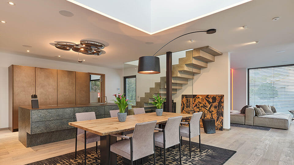 Galeria de fotografies on es pot veure un exemple de casa prefabricada amb l’empresa Luxhaus on s’utilitza tecnologia Loxone.