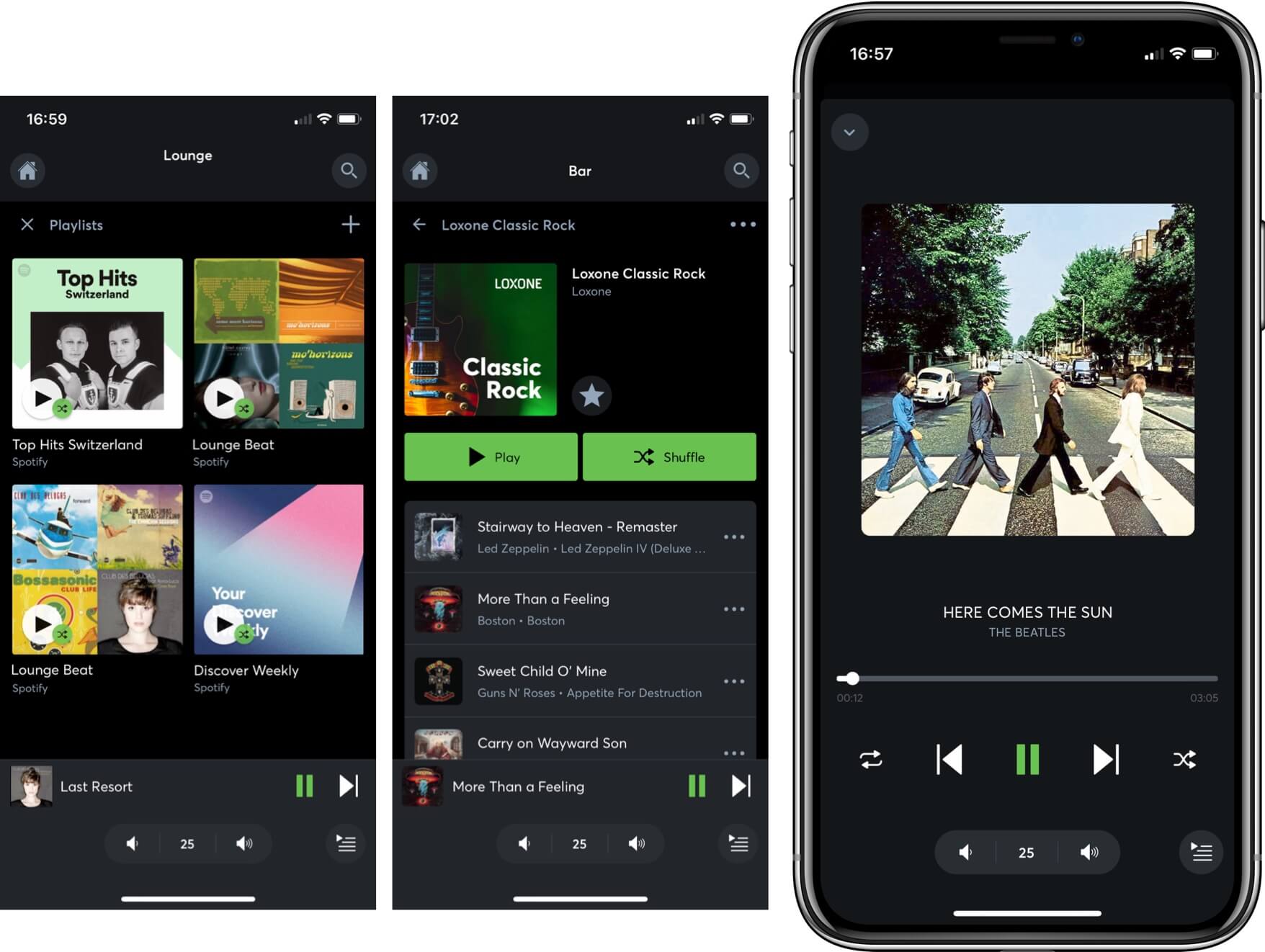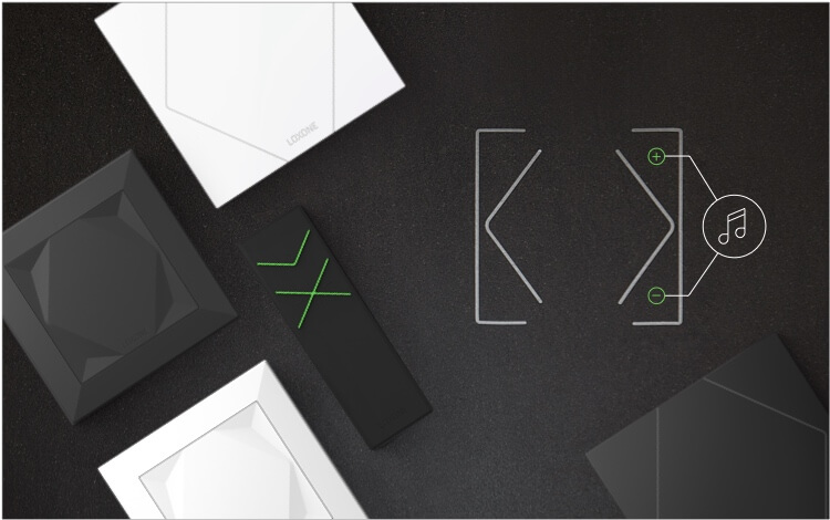 Amb Loxone, si es vol, la música es reprodueix automàticament, sense tocar res. Tot i així, si es vol activar-la o desactivar-la manualment, pujar o baixar el volum, o canviar la cançó que sona, sempre estan disponibles els polsadors Touch, així com el comandament Remote Air.