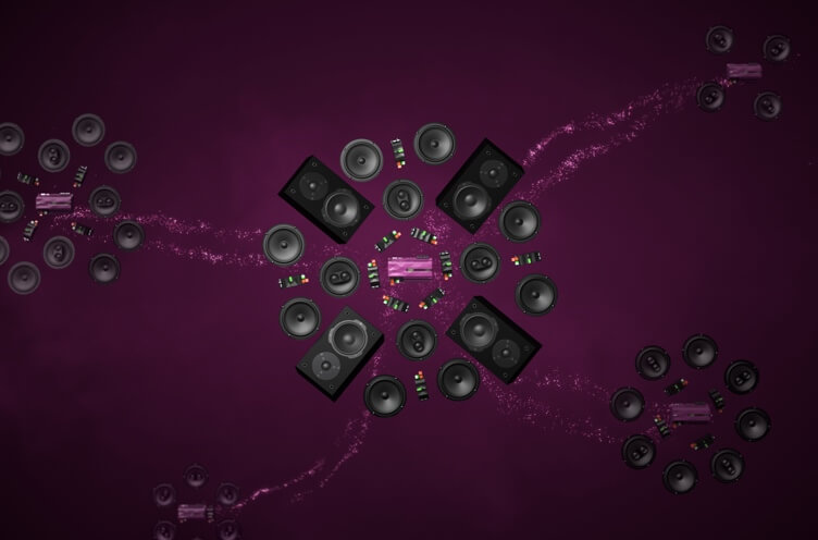 Des del menjador, bany i dormitori d’un apartament, fins a una espaiosa sala d’esdeveniments, zones en un centre comercial o habitacions d’hotel. Pots agrupar qualsevol quantitat de canals d’amplificació i altaveus, creant ambients sonors sincronitzats fins a l’última cantonada de l’edifici.