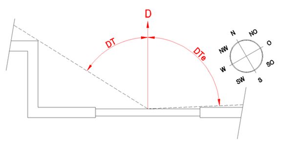 DTe: Směrová tolerance pro výstup slunce z úhlu stínícího zařízení, tedy stejný princip jako parametr DT.