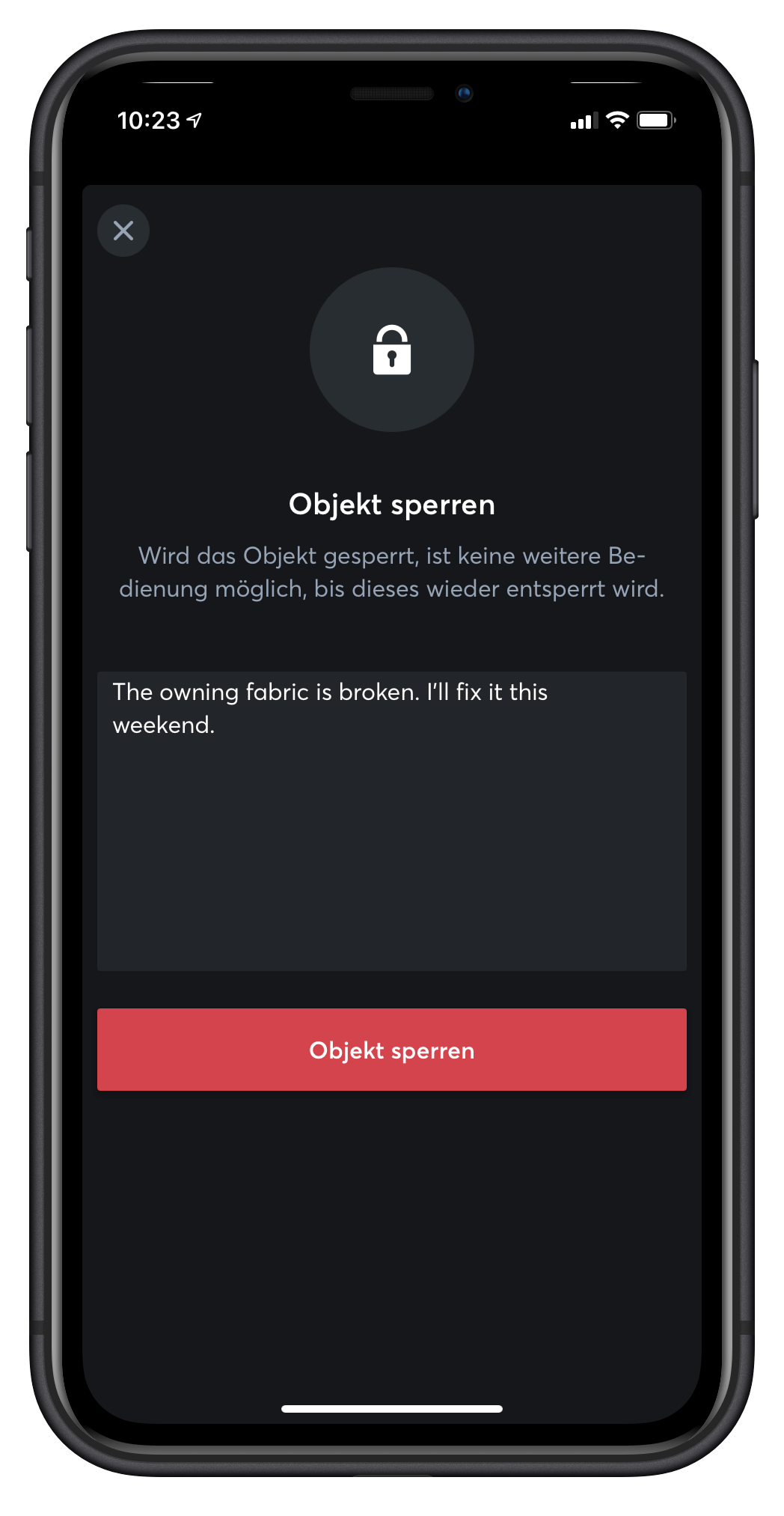 V určitých situacích je nutné moduly dočasně uzamknout, aby se zabránilo automatickému nebo manuálnímu ovládání. Například v případě poškozeného stínění. Aby mohli vaši zákazníci s potřebnými uživatelskými právy reagovat co nejrychleji, mohou modul pomocí aplikace uzamknout. Uživatel může zanechat v aplikaci poznámku pro ostatní uživatele. Tato funkce je podporována všemi funkčními bloky a nabízí větší zabezpečení v případě nutné údržby nebo vypnutí.