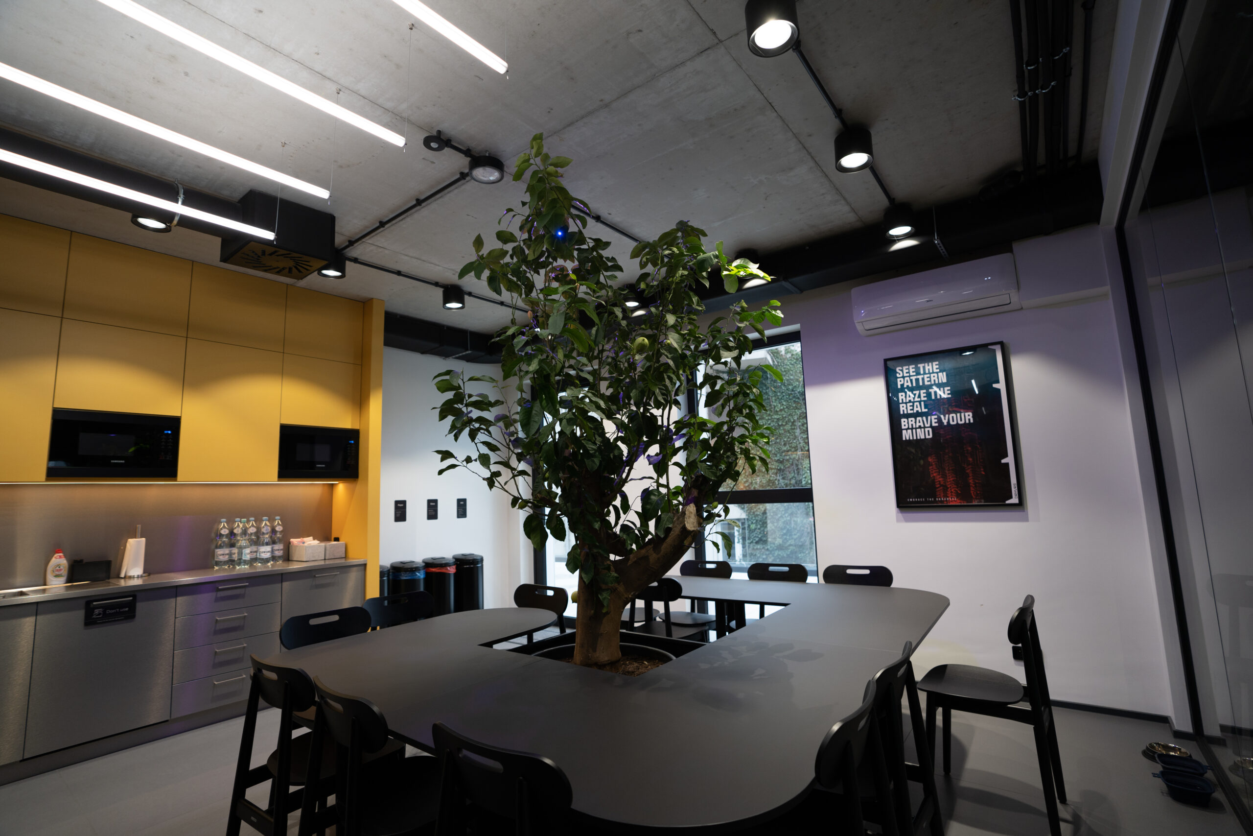 Zaměstnanci často prezentují a účastní se on-line schůzek, které vyžadují slušný audiovizuální systém. Jedná se o ucelené řešení pro celou budovu, přičemž přizpůsobení individuálním potřebám zajišťuje využití multiroom audia. Systém je propojen se streamovacími službami, jako je Spotify, aby zároveň zajistil vytvářel pracovní atmosféru.