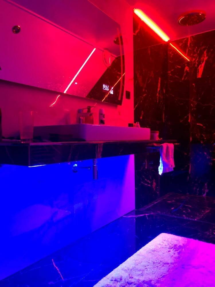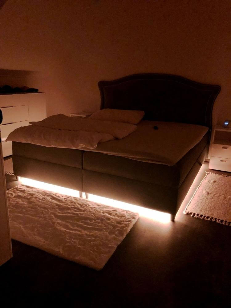Přepínání světelných nálad zajišťují jak Loxone tlačítka na stěnách, tak Touch Nightlight Air na nočním stolku.