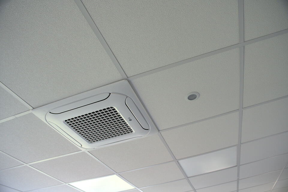 Inteligentní kancelář má celkem 15 klimatizačních jednotek značky LG. Komfortní teplotu zajišťují bez jakéhokoli ručního štelování – požadované stupně udržují podle aktuálních podmínek. Zároveň se nestane, že by běžely přes radiátory. Aktivní chlazení doplňuje i pasivní v podobě předokenních žaluzií, rovněž automatizovaných, které tak pomáhají ochlazovat kanceláře bez nákladů.