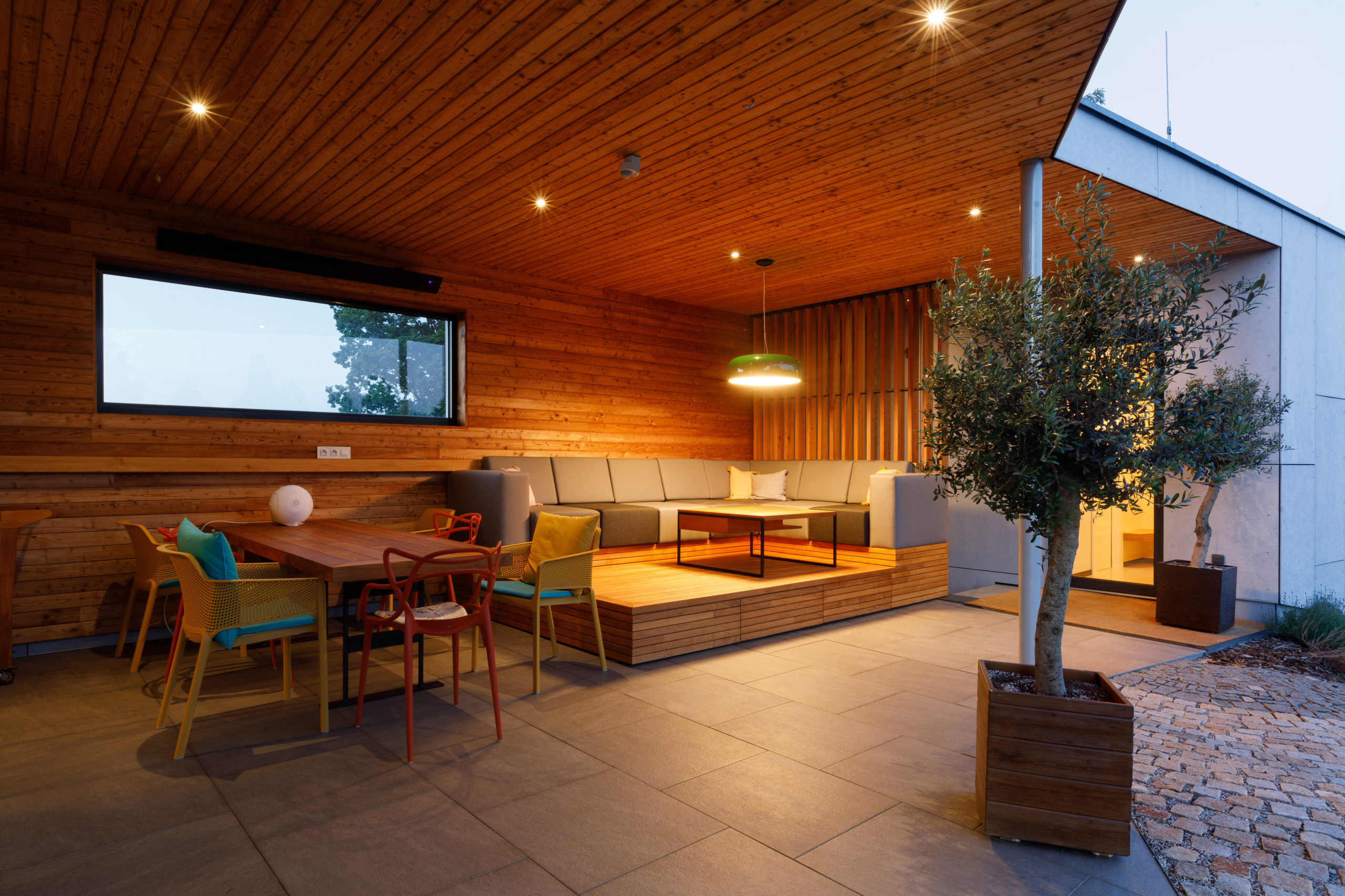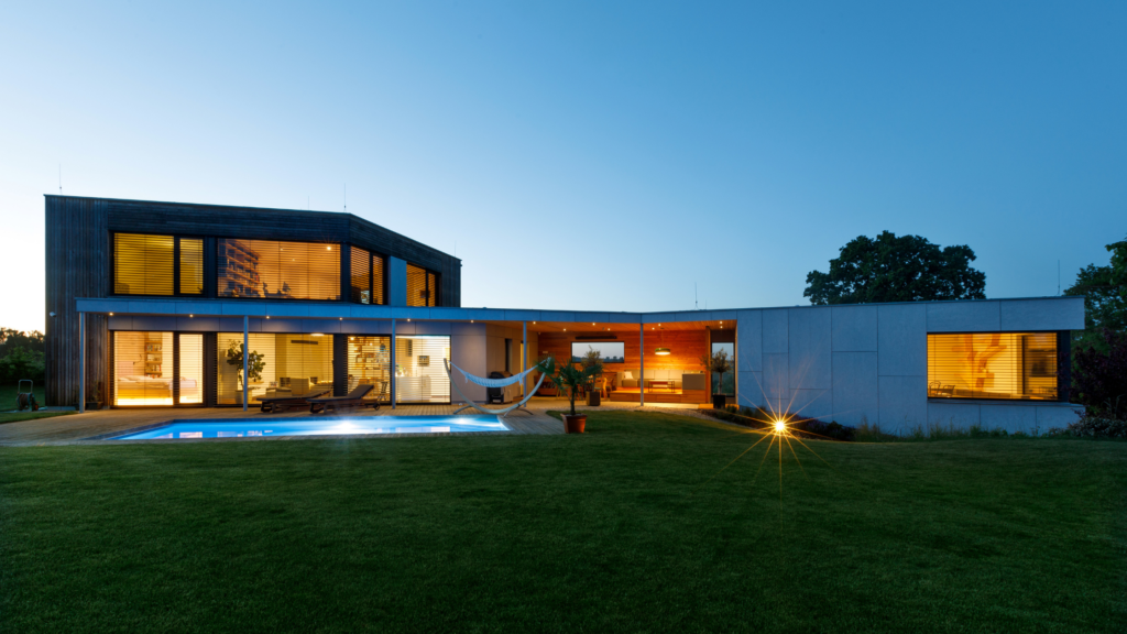 Jedním z hlavních požadavků současného majitele byla hlavně praktičnost. Podle toho vybral návrh architekta. Ten mu vnukl nápad, jak příjemné užívání domu ještě zdokonalit – chytrou elektroinstalací. Myšlenka se investorovi zamlouvala. A tak technologie v domě převzal Loxone. Stará se o ovládání žaluzií, osvětlení, topení, audio, přístupy či saunu a zakrytí bazénu.