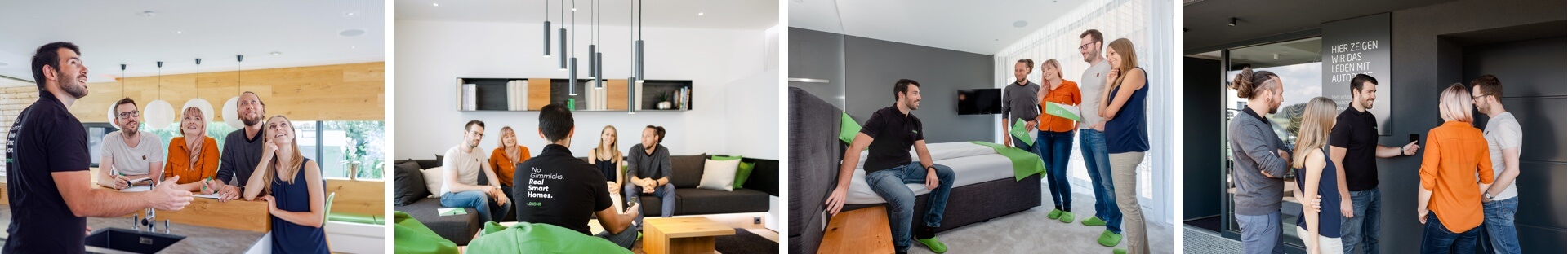 V průběhu prohlídky máte jedinečnou možnost vyzkoušet si jednotlivé funkce Loxone Smart Home. Světelné nálady, dotyková tlačítka a jejich koncepci, mobilní aplikaci a mnoho dalšího. Nebo se můžete jen procházet, či se posadit do našeho obýváku a pozorovat, jak dům pracuje za vás.