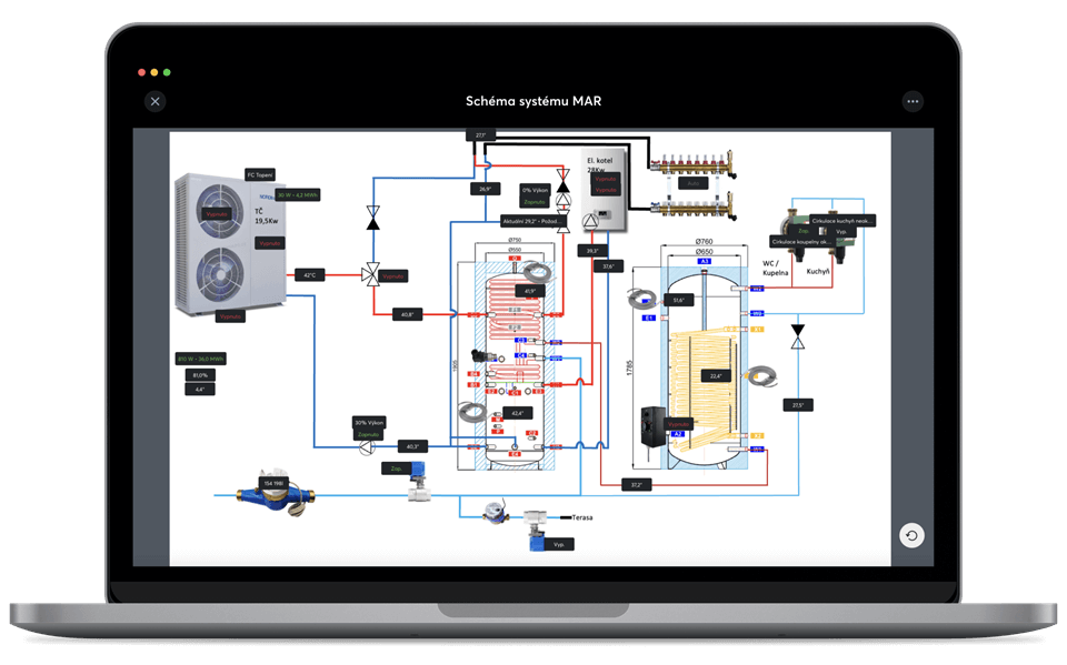 Schéma systému v domě Pavla Lískovce