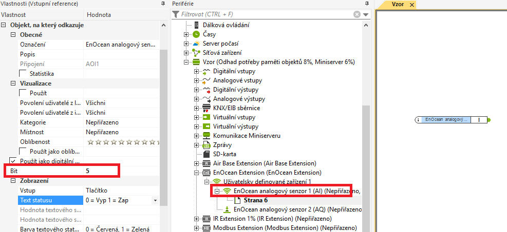 Nastavte dolní a horní bity rozsahu seznzorů a aktorů ve vlastnostech zařízení.