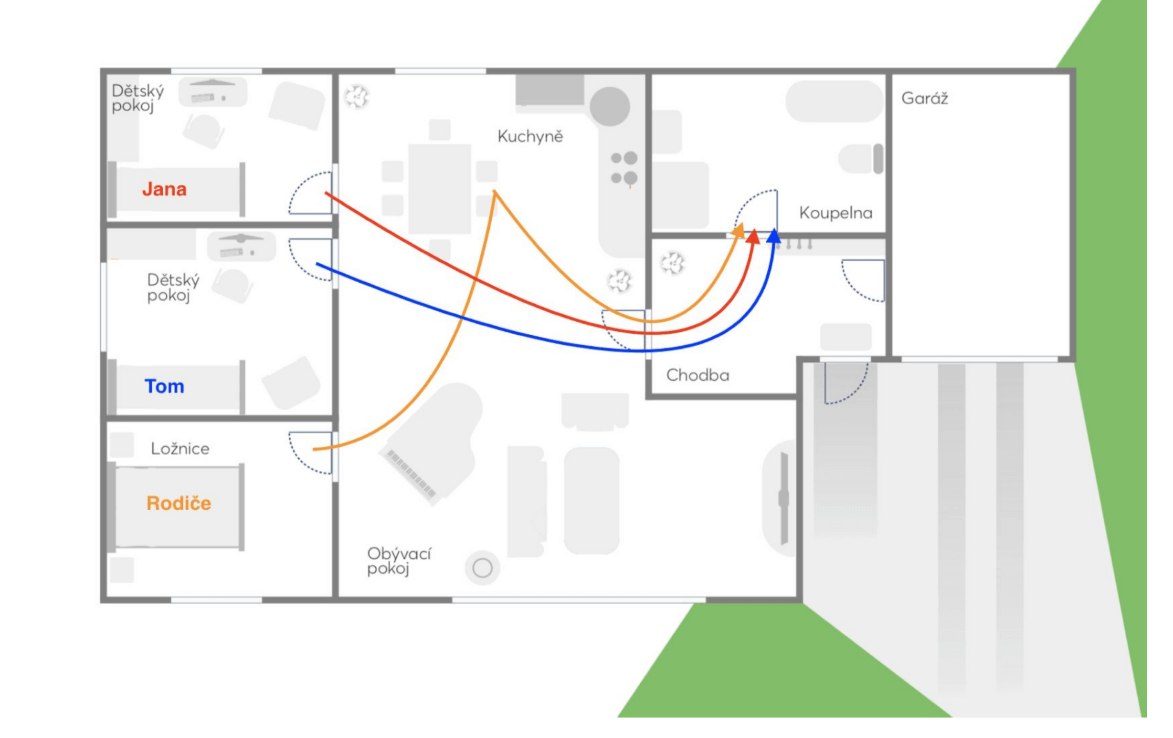 V rodinném domě bydlí rodina (2x děti + rodiče) viz. obrázek. Děti jsou různé věkové