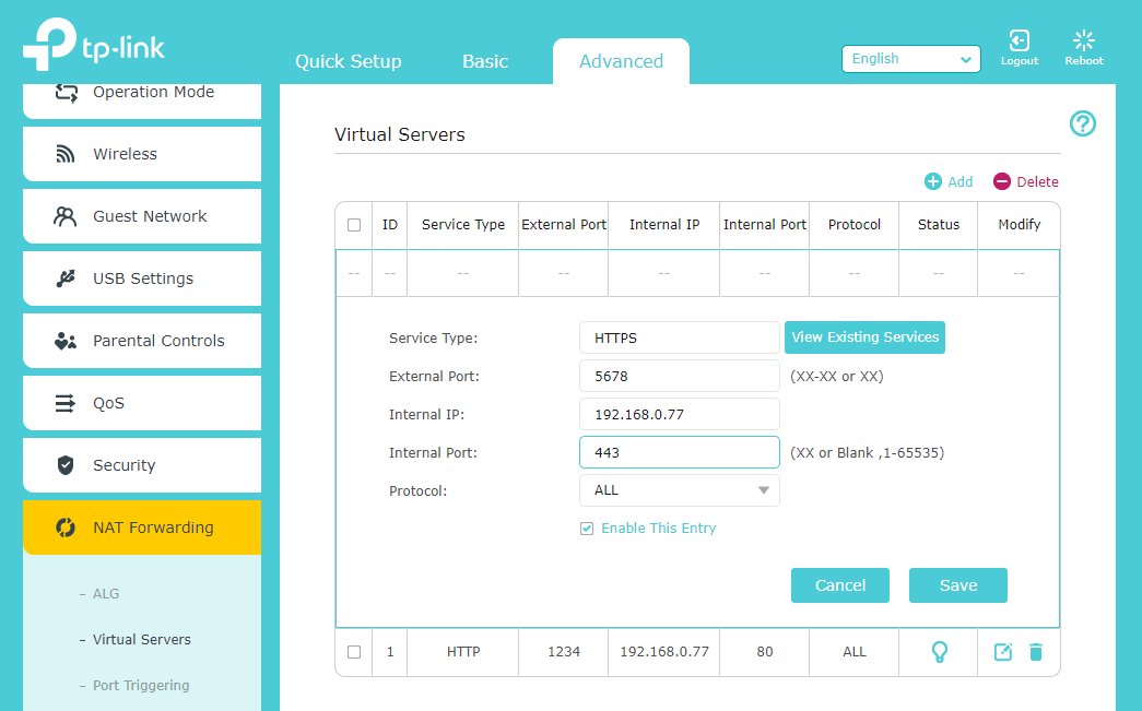 Vybraný port pak musí být nakonfigurován v nastavení přesměrování portů routeru.