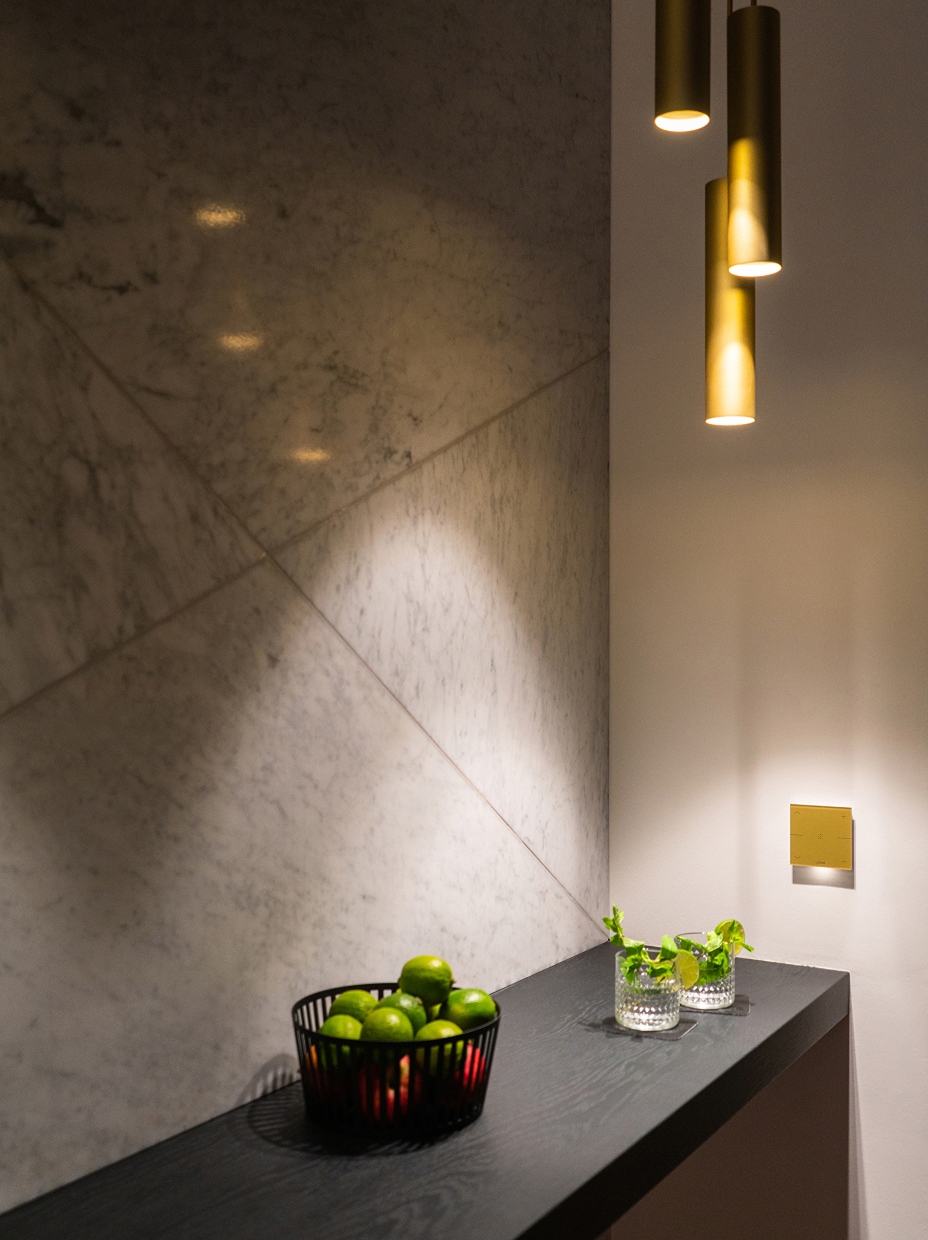 Touch Pure spojuje elegantní design s praktickými detaily. Jeho orientační světlo vám usnadní najít tlačítko i v naprosté tmě – a zároveň v noci zajistí jemné nasvícení pro bezpečný pohyb po místnosti.