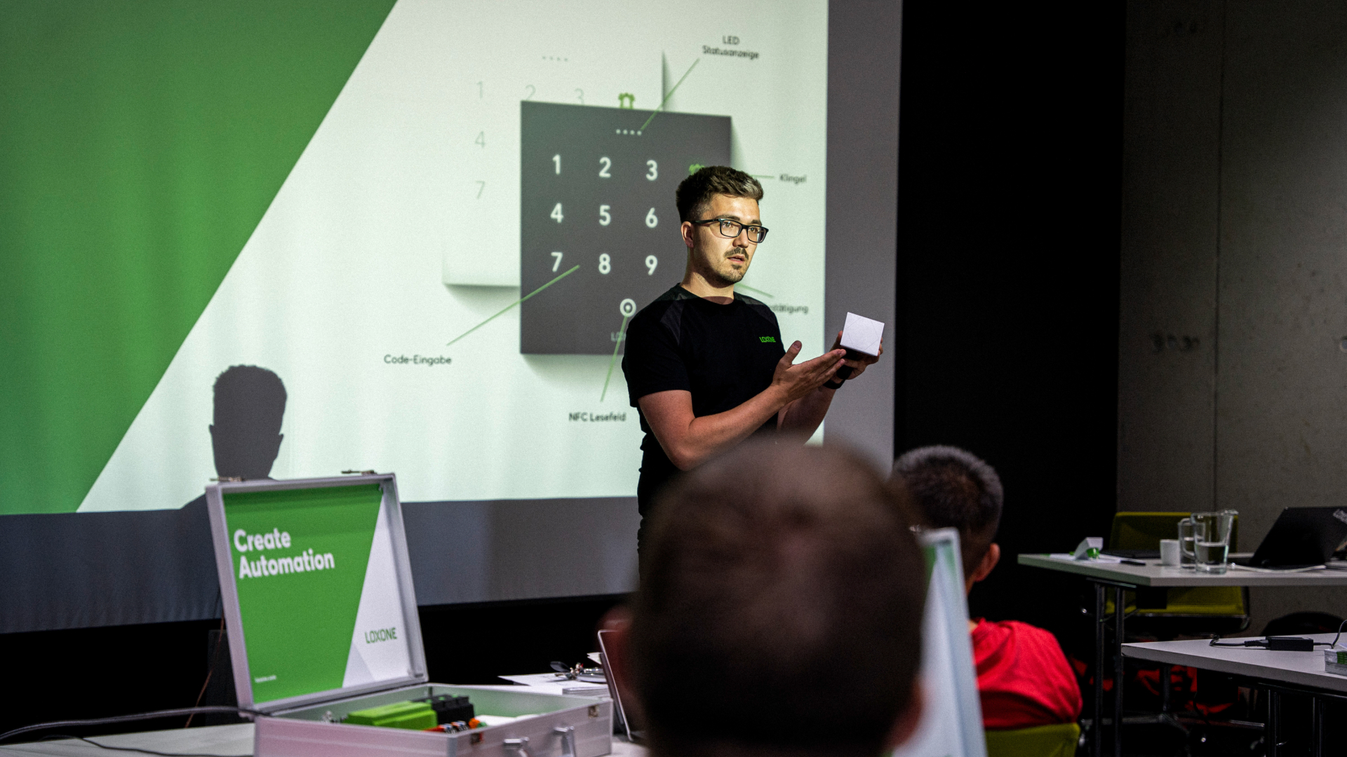 Ob Grundausbildung, Auffrischungskurs, Spezialtrainings oder Fokus-Workshops mit Themen wie Klimasteuerung, Lichtautomatisierung oder Mediensteuerung und Audioserver, in jeder Schulung wird von den Teilnehmern Hand anlegt. Dank Musterkoffer, Demo-Wände und der Loxone Config am Laptop eines jeden Teilnehmers ist eine praxisnahe Ausbildung in Sachen Verkabelung, Montage, Konfiguration und Inbetriebnahme gewährleistet.