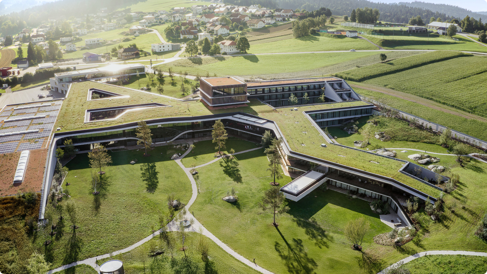 80.000m² inklusive 78% Dachbegrünung nachhaltig bewässern? Kein Problem! Am Loxone Campus erfolgt die Bewässerung vollautomatisch – angepasst an Bodenfeuchte und Wettervorhersage. So spart man sich jedes Jahr bis zu 15 Millionen Liter Wasser. Das entspricht über 100.000 gefüllten Badewannen.