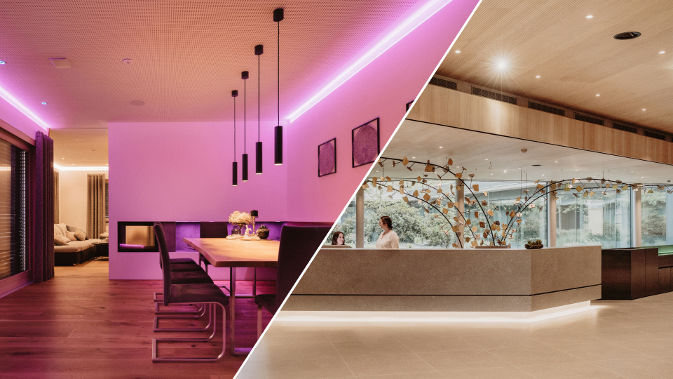 LED Streifen sind eine elegante Lösung, wenn es um indirekte Beleuchtung geht. Hinter Möbeln oder einer abgehängten Decke sorgen sie so für einen WOW-Effekt.