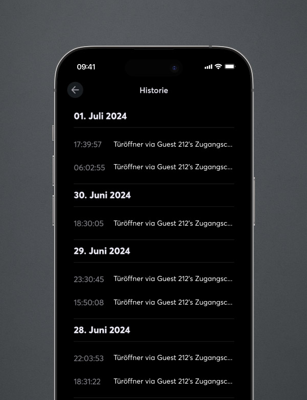 Übersicht auf dem Smartphone über Zutritt zu Gebäude