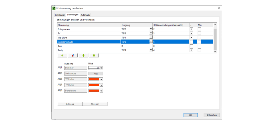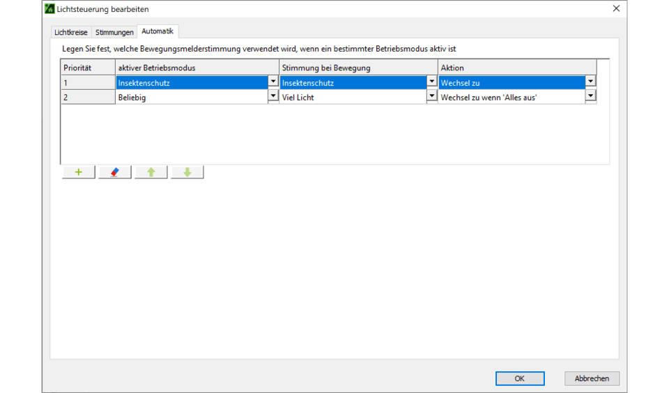 Durch einen Doppelklick auf die Lichtsteuerung erstellen Sie eine neue Lichtstimmung und geben ihr den eindeutigen Namen “Insektenschutz”.
