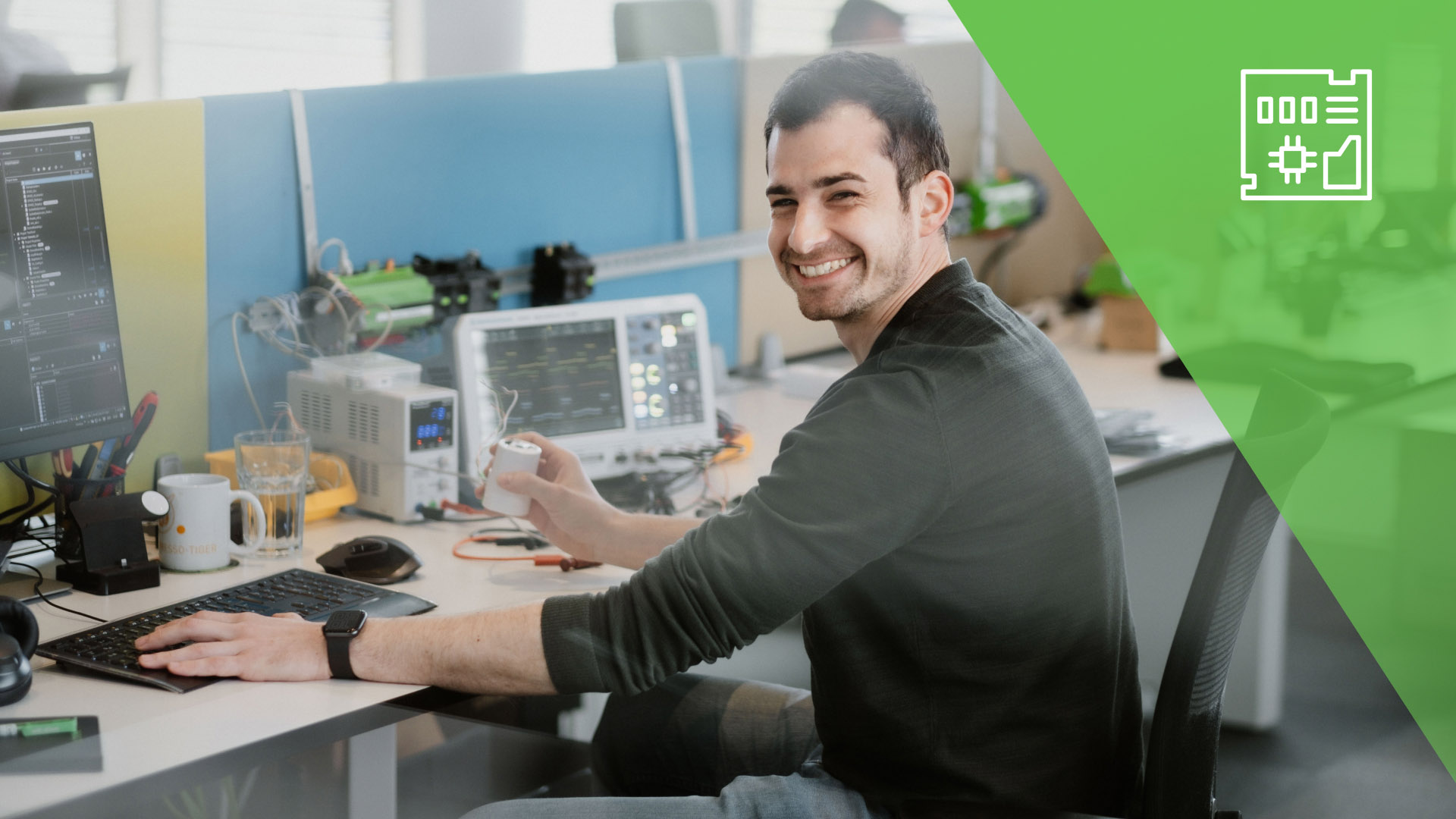 3D-Drucker, EMV Equipment, Mikroskope, Messgeräte… Das Arbeitsmaterial auf das unsere Entwickler zugreifen können gehört zum Besten was auf dem Markt zu finden ist.