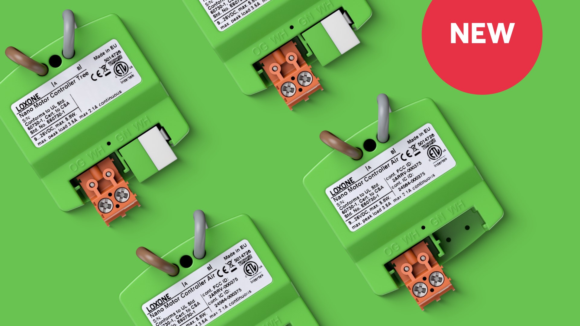 Die Loxone Nano Produkte zeichnen sich durch eine kompakte Bauweise aus und ermöglichen so die einfache Installation von Feldkomponenten. Mit dem neuen Nano Motro Controller Air (Art. Nr.: 100472) und dem Nano Motor Controller Tree (Art. Nr.: 100473) erweitern wir das Sortiment und bieten eine Möglichkeit zur Ansteuerung von Gleichstrommotoren sowie zur Dimmung von LED Leuchtmitteln.