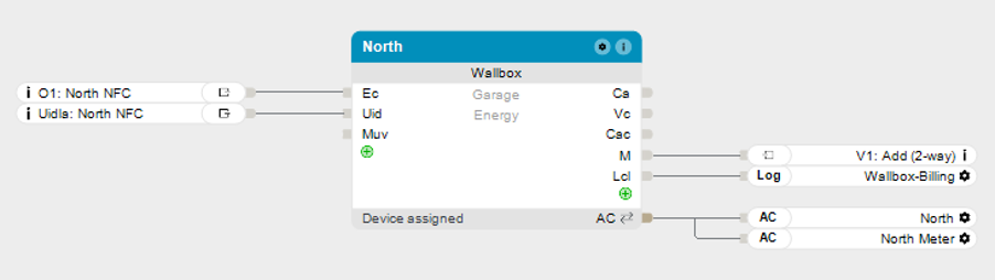 - Verbinden Sie diesen mit dem Ausgang „Lcl“ (Last Charge Log) des Wallbox Bausteins.