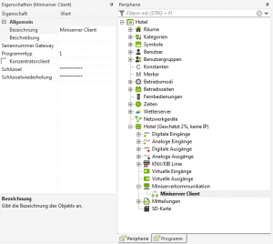 In den Dokumenten wird hier dann unter “Miniserverkommunikation” ein “Miniserver-Client” eingefügt. In diesen wird dann der selbe Schlüssel wie auch bei Gateway hinterlegt ist eingegeben. Wichtig ist hier dann noch die Seriennummer des Gateway Minsiervers und der Programmtyp.