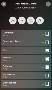Die neuen kategoriebezogenen Zentralbausteine sind Visualisiert. In der Visualisierung wird der Aktuelle Zustand der Beschattung, Beleuchtung, Musik usw. dargestellt.
