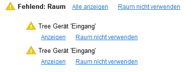 2 Tree Geräte haben keinen Raum zugeordnet. Ich sollte den Raum korrekt zuordnen um Probleme in der Auto Konfiguration oder auch bei der Anzeige in der App zu verhindern