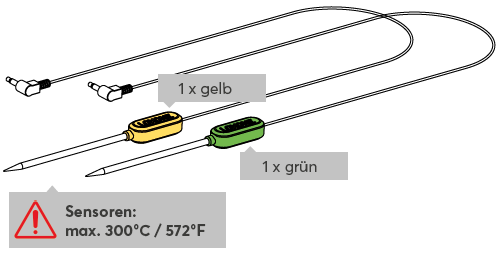 Verwenden Sie die Temperatursensoren nicht auf einem Induktionskochfeld. In diesem Fall kann es zu Störungen des Betriebs und fehlerhaften Temperatur Messwerten kommen.