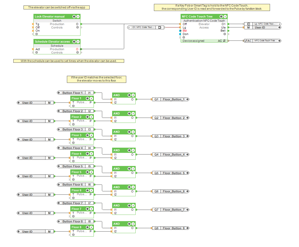 Lösung: Zutrittskontrolle eines Aufzugs mit Hilfe des NFC Code Touch