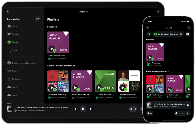 Ein Multiroom-System vernetzt verschiedene Lautsprecher in Ihrem Gebäude, sodass Sie in verschiedenen Räumen unterschiedliche Musik hören, im ganzen Haus dieselbe Playlist synchronisiert genießen und alles zentral steuern können – per App, Taster oder automatisch per Präsenzerkennung.