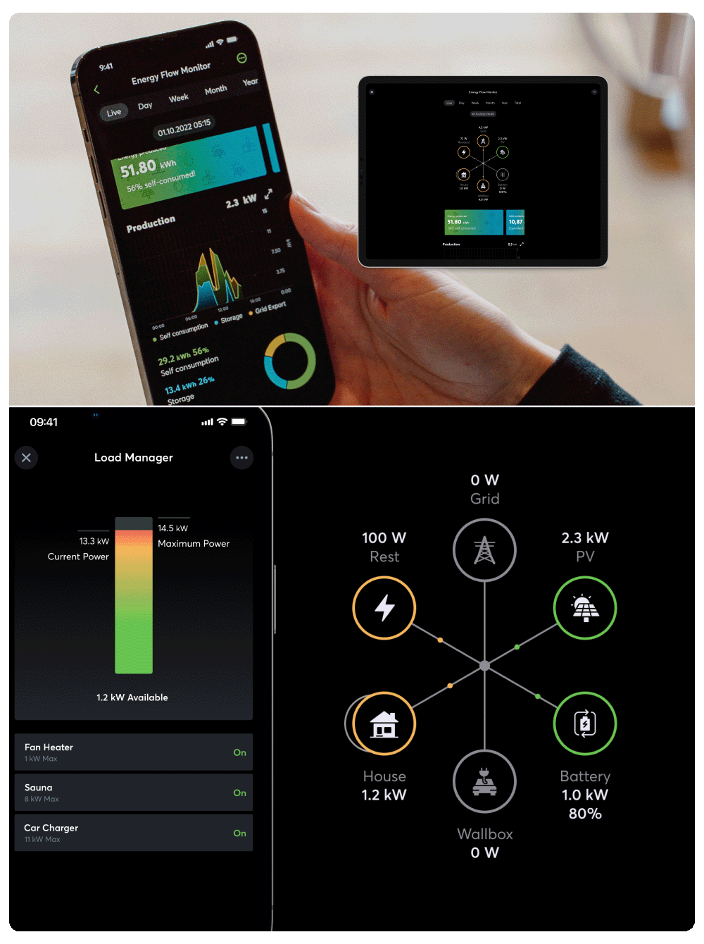 Wie viel Leistung wird aktuell aus dem Netz bezogen? Wie viel Energie erzeugt die PV-Anlage? Wie ist der Ladestand des Speichers? Welche Geräte beziehen wie viel Leistung?