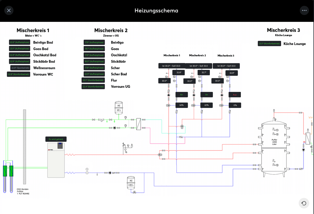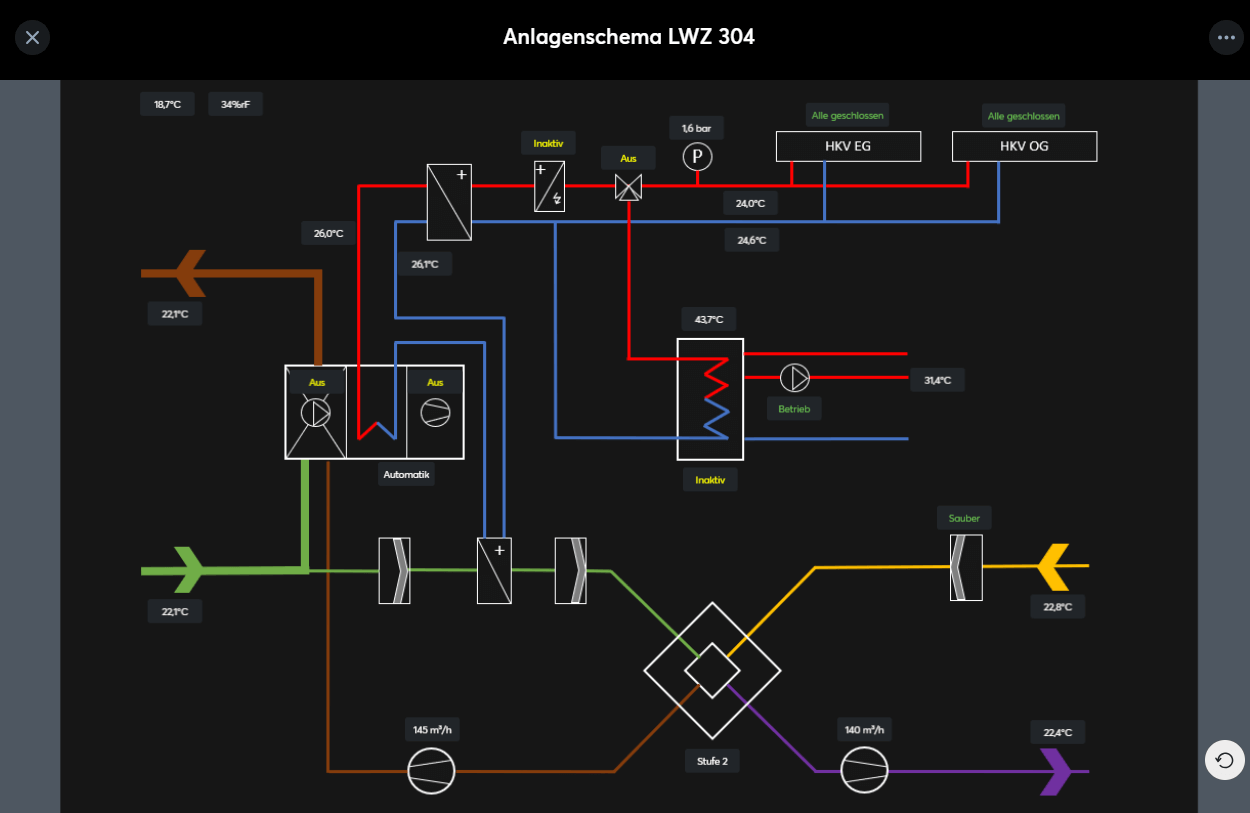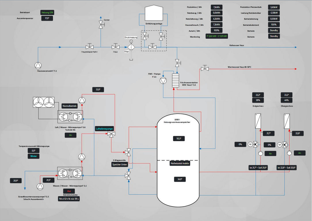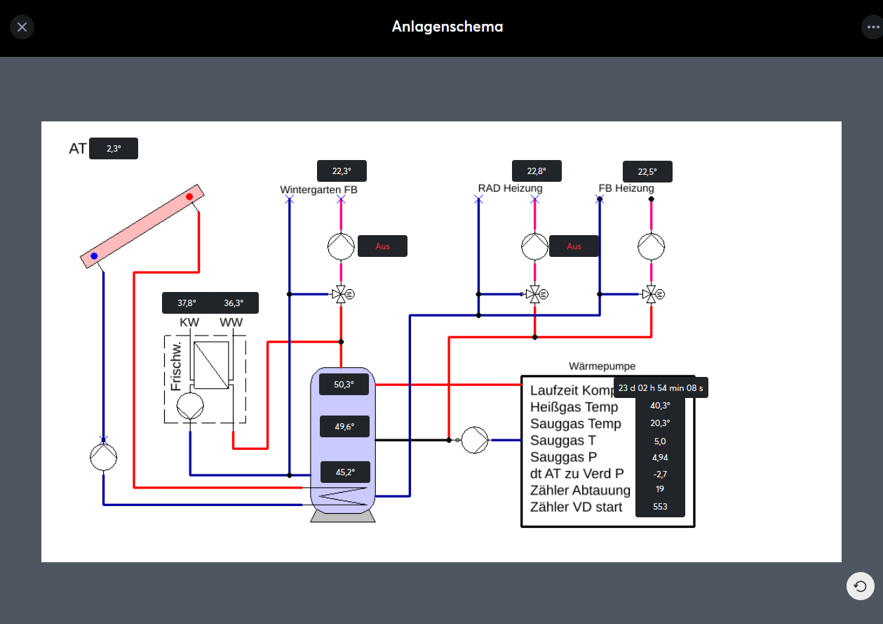 In dieser Galerie finden Sie Visualisierungen welche Partner und Kunden mit dem neuen Funktionsbaustein „Anlagenschema“ umgesetzt haben. Lassen Sie sich inspirieren!