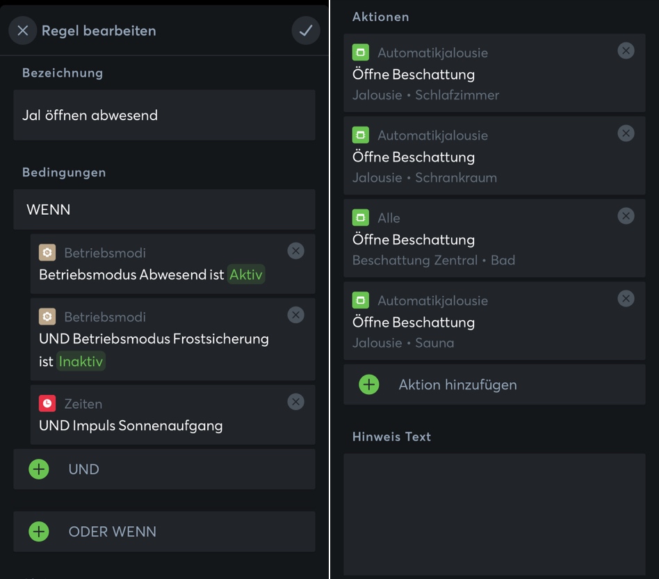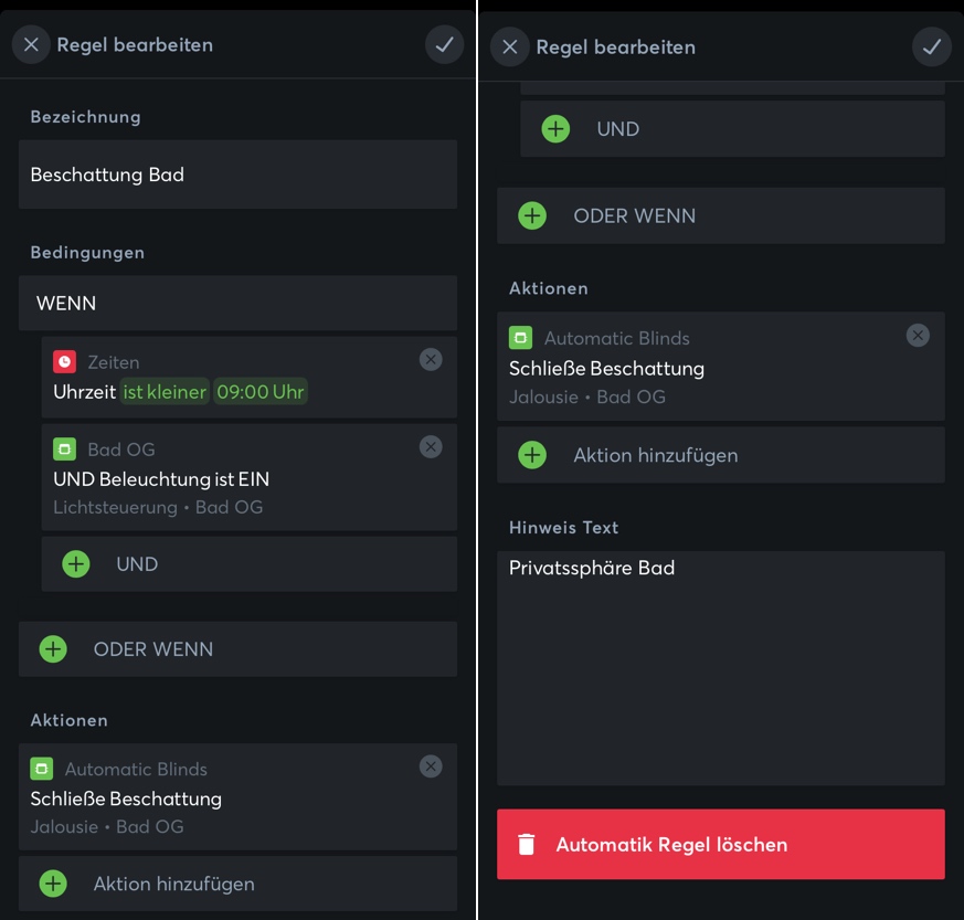 Erstellen von Automatikfunktionen einfach via App