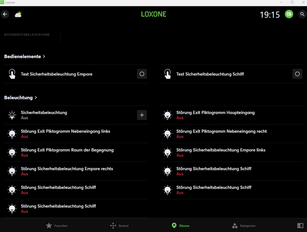 Die gesamte Beleuchtung wurde erneuert und erhielt eine neue Steuerung. Dank Loxone ist es nun einfach möglich, verschiedene Lichtszenen für die Messen und individuelle Stimmungen für Veranstaltungen zu erstellen und zu verwalten. Die Lichtszenen können mit einem einfachen Klick auf den Touch in der gesamten Kirche geändert werden. Zudem wird auch die Sicherheitsbeleuchtung über Loxone gesteuert und sämtliche Fehlermeldungen werden über die Loxone App ausgegeben. Außerdem wurde ein Teil der Außenbeleuchtung in Loxone integriert.Das richtige Klima ist in der Kirche, insbesondere aufgrund der Orgel, von großer Bedeutung. Loxone überwacht Temperatur und Feuchtigkeit in der Kirche. Außerdem wurden verschiedene Zeitprogramme für Beleuchtung und Lüftung hinterlegt.