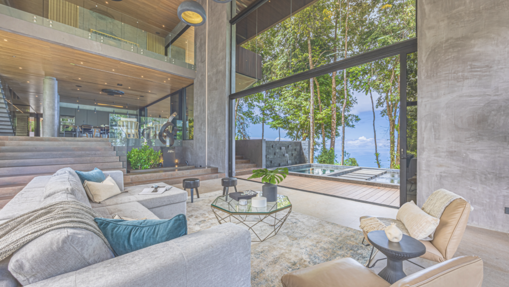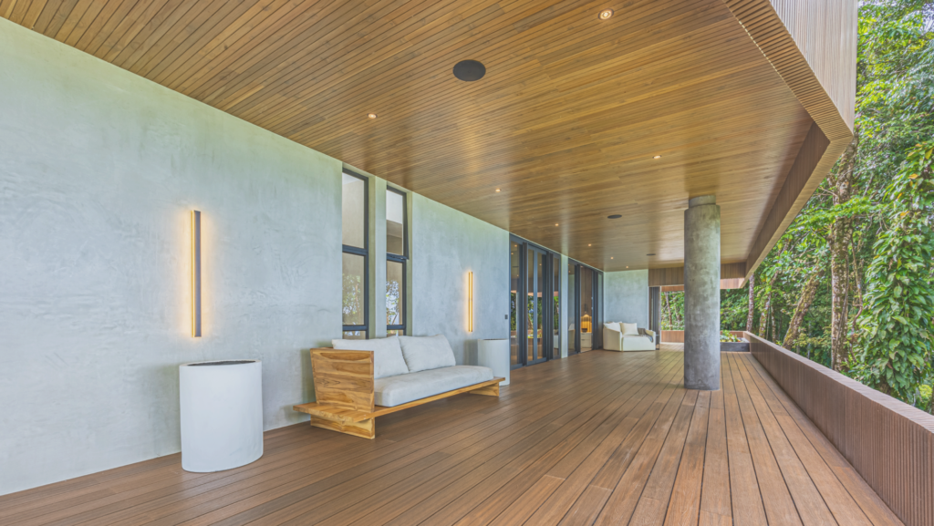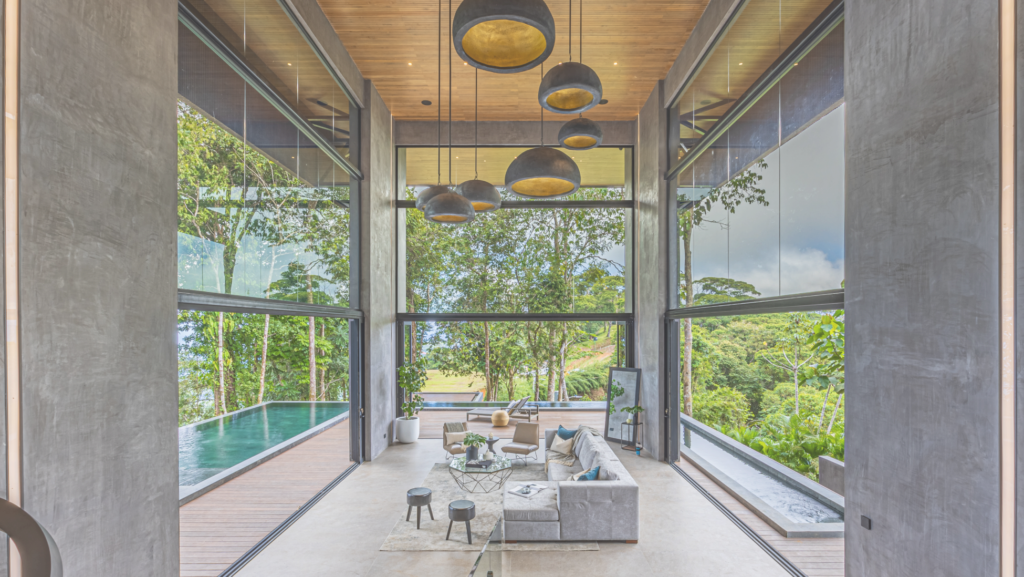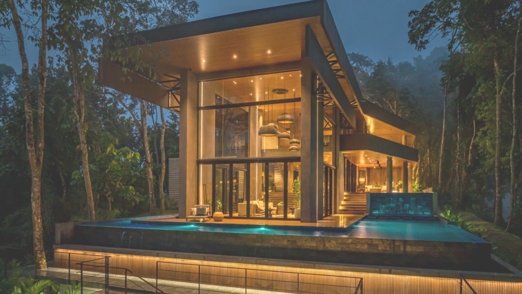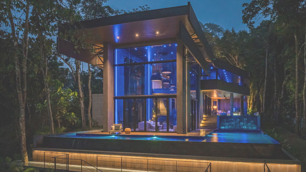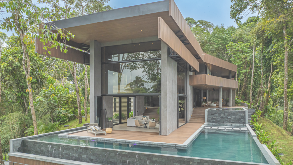string(620) "The first house of Azur Projects Dominical is designed to create an emotional connection with architecture by embracing the beauty of its surroundings. Elements such as light, sun, open spaces, ocean views, and the lush tropical forest integrate with the use of natural-looking materials, creating a serene living environment. The neotropical design strikes a harmonious balance between grand structural elements and gentle natural touches, infused with a hint of mystical architecture. This unique vision, known as “Corazón de Selva,” centers around a fully automated home experience that elevates everyday living."
