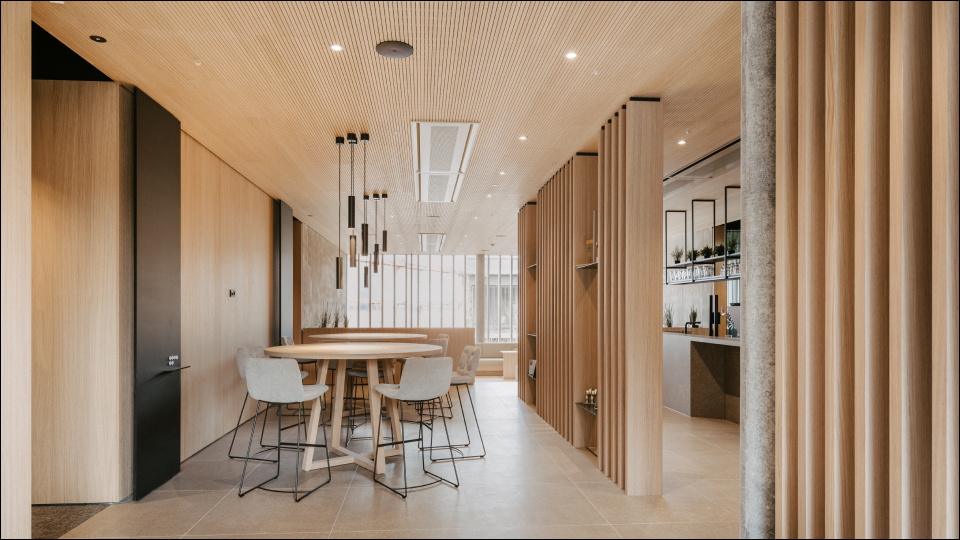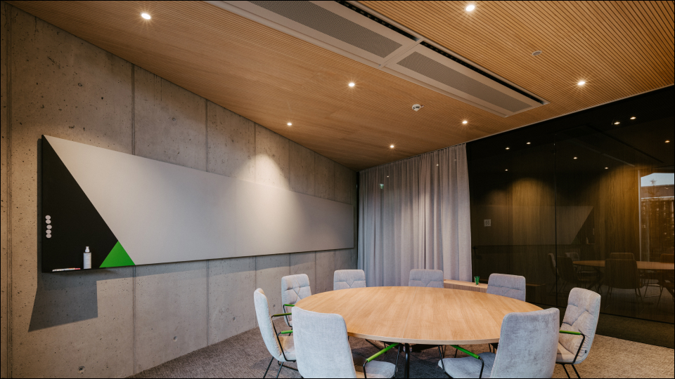Die Bürofläche ist in 14 Bereiche unterteilt, die jeweils durch einen Miniserver Compact automatisiert werden. Dadurch werden optimale Arbeitsbedingungen in jedem Bürobereich gewährleistet. Darüber hinaus verfügt jeder Mitarbeiter über eine NFC-Karte, mit der die Abrechnung von Mittagessen, Snacks oder Kaffee unkompliziert erfolgt.