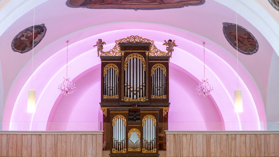 string(664) "To protect the sculptures, which are sensitive to high humidity, the room temperature and humidity are constantly monitored. The supply temperature for the wall heating is controlled by the miniserver and ensures a constant temperature of about 14°C in winter. At the push of a button, masses in the parish church are staged with the appropriate lighting mood. Eight different lighting scenarios are available for selection: Sunday, weekday, rosary, confession, feast day, baptism, adoration wake, central off or reset light scenes. The lighting in the sacristy is presence controlled. This ensures that the lighting is only on as long as someone is in the room. "