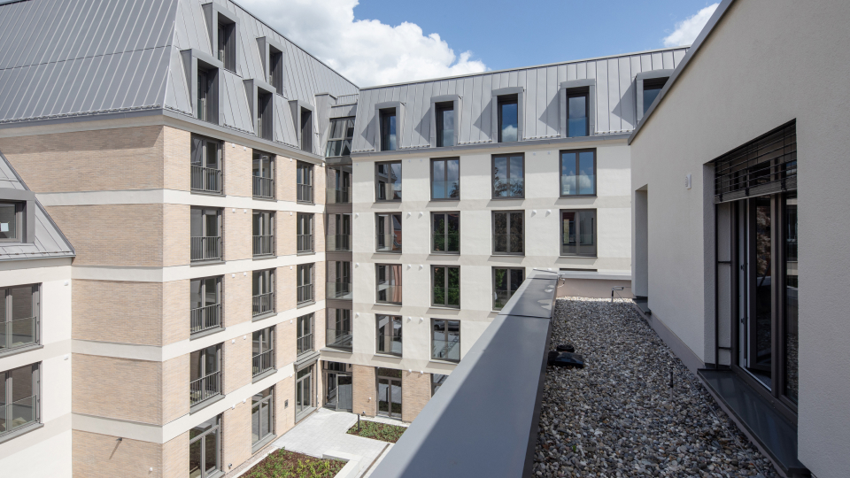 Equipped with storm protection, the shading automatically reacts to changes in the weather. If, for example, a storm is approaching, sensitive shading elements automatically move into the safety position. This process is completely autonomous, regardless of whether anyone is present in the apartments or not. The Weather Station provides weather service measures such as brightness levels, which is why the shading independently changes its position to match the position of the sun. Temperature is also continuously monitored, and the Weather Station transmits the exact data to the Miniserver. In summer, the shading saves residents from overheating in the rooms, and in winter it insulates the building to keep the warmth inside.