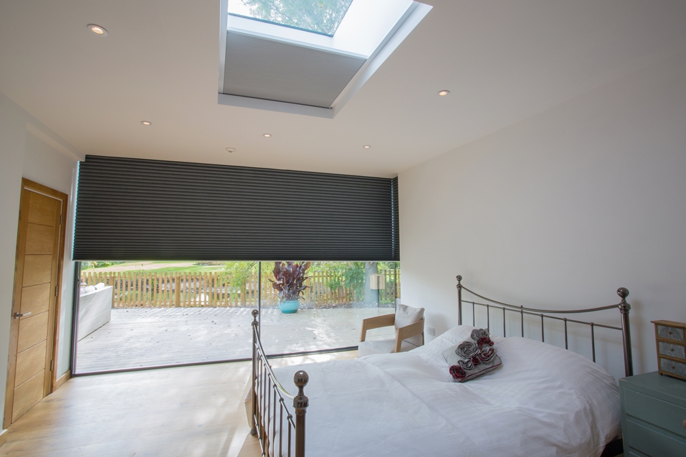 Automated shading with a long line of smart blinds that react to indoor temperature and the orientation of the sun to prevent the largely glass exterior of the property from overheating.