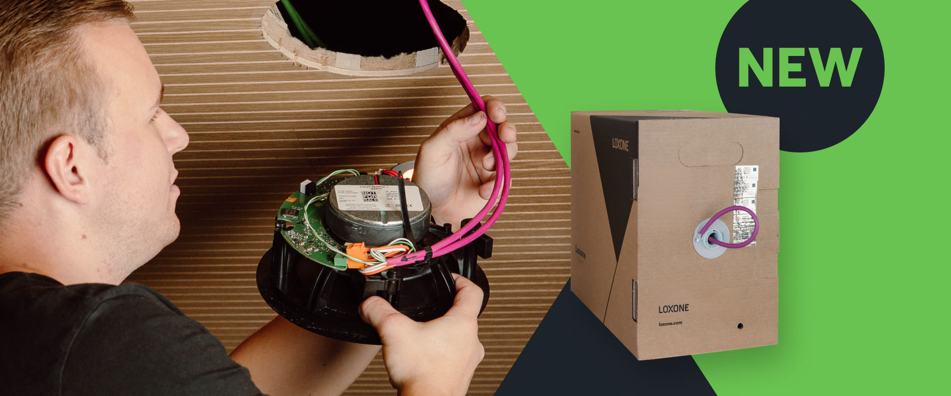 Installing Master/Client speakers has never been more straightforward than with the new LOXONE Audio Cable. This high-quality cable combines the 24V DC power supply and data transmission in a single cable – ideal for a fast and reliable audio installation.