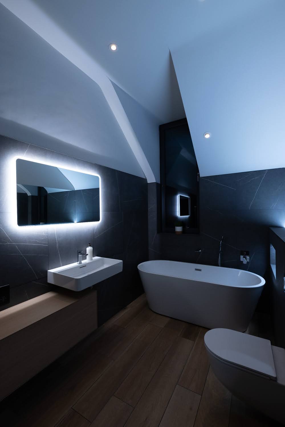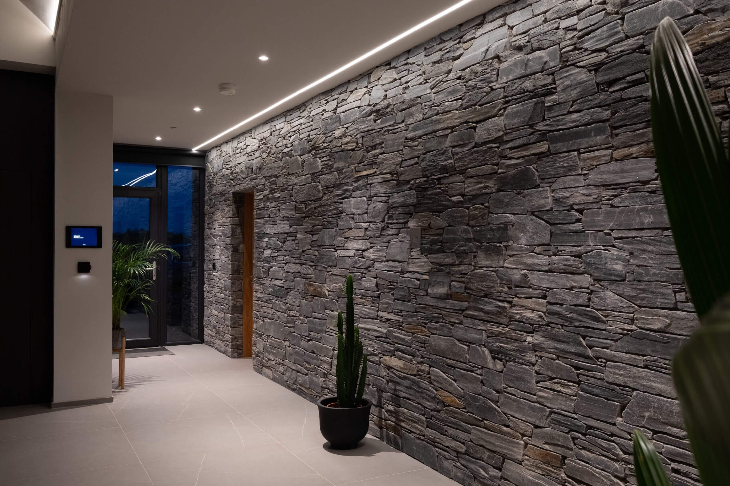 We’ve used lots of Loxone light fittings and we especially love the LED Pendulum Slim and the very versatile Ceiling Light Tree too. We chose Loxone’s excellent presence sensors and other sensors monitor the status of all our external doors, gates, garage doors and windows. All these devices, along with a very comprehensive data network and PoE camera system, forms the security system. Driving a car that uses your smartphone as the key is great and it led us to add motorised locks to the house to remove the need to carry a key for it too.