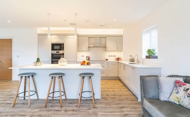 If we take 4% of our average house price, we get a cost of £9,800. So we’re around the £10,000 mark for a mid-range kitchen. In smart home terms, this would allow you to have the lighting, heating and security features from your basic spec, plus some additional features such as access control and an intercom to allow you to see and speak to visitors at your front door from anywhere in the world.