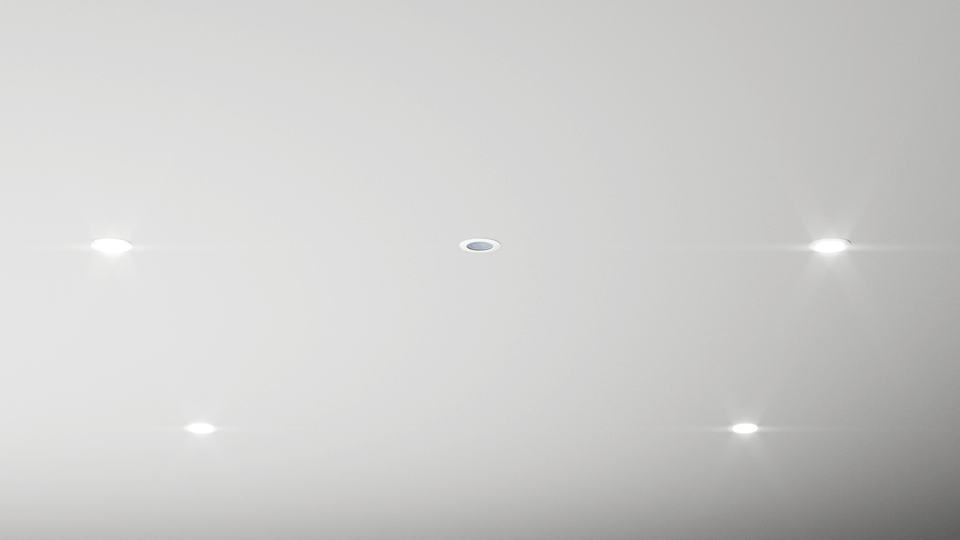 The correct spacing of LED spotlights and presence sensors plays a decisive role in the aesthetic appearance of the room. We recommend placing the Presence Sensor in the centre between two LED spots and plan the LED spots in the usual grid (such as the image to the right). We advise against omitting an LED spot in favour of a presence sensor, for example, as this could give the impression that an LED spot is defective or that the lighting line is uneven.