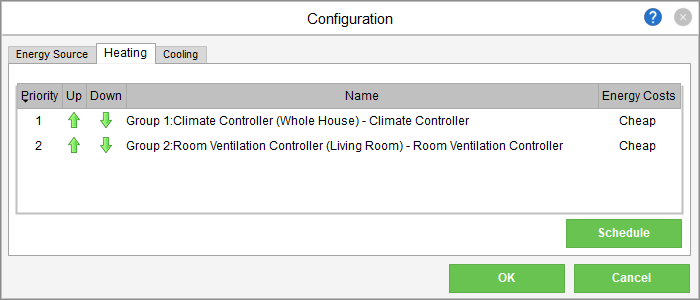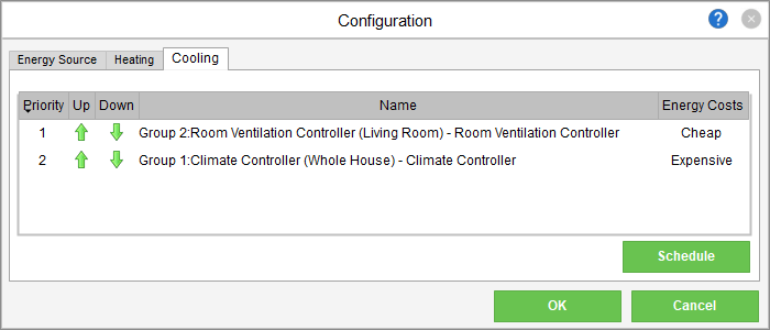 If several heating and/or cooling sources are planned for a specific Real Smart Home, then you’d include a Climate Controller Function Block for each one. As a Loxone Partner, in the properties of a Climate Controller, you can define the priorities of the respective sources and indicate whether the energy cost for each is cheap or expensive. An expensive energy source will then only be called upon if a higher priority, cheaper source is not available.
