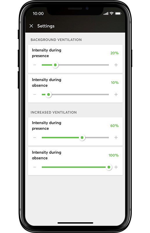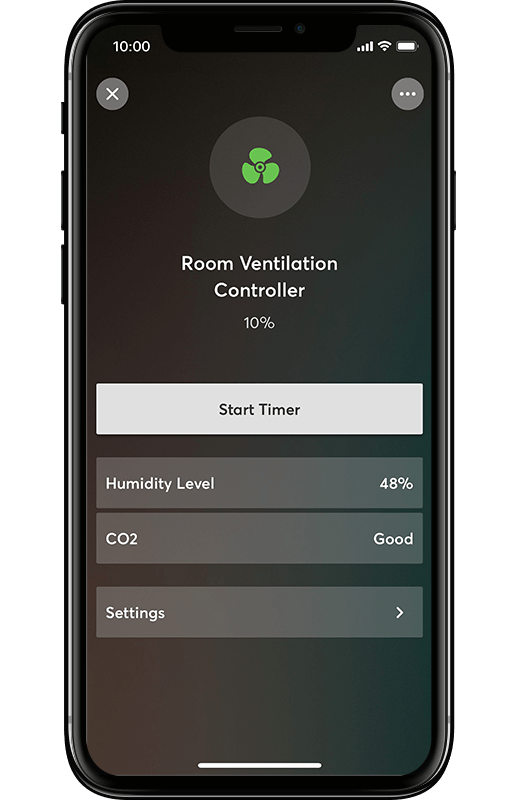 Your customers can see, at a glance, what the ventilation in a room is doing. In addition to the fan speed, the relative humidity and CO2 levels are also displayed, if the relevant sensors have been installed.