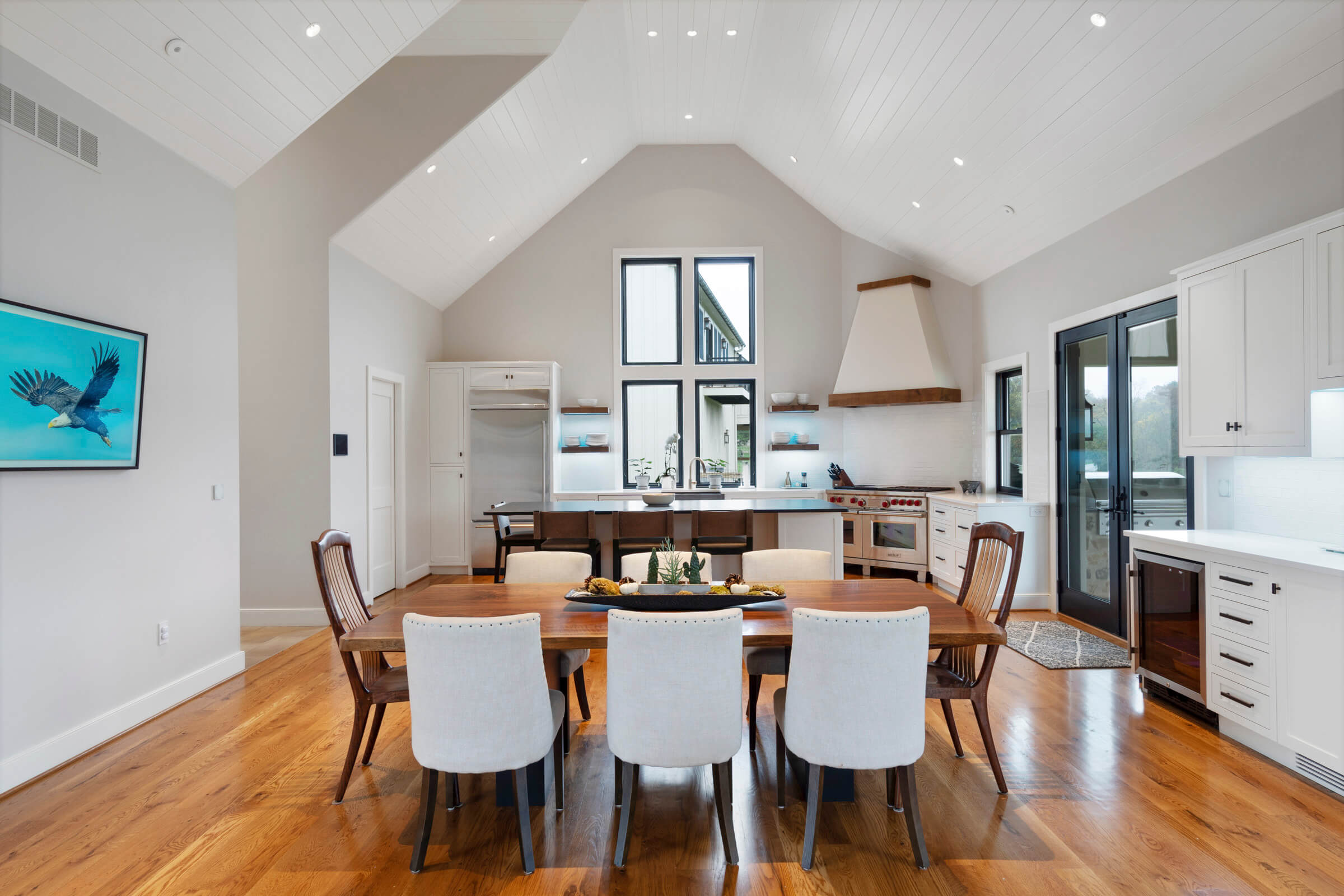 I love that with Loxone I was able to use any light I wanted to get any desired lighting effects. For example, the third-party spots on the angled ceiling in the kitchen and dining area are controlled just as easily as any Loxone lights used in the home. This flexibility was possible inside and outside.