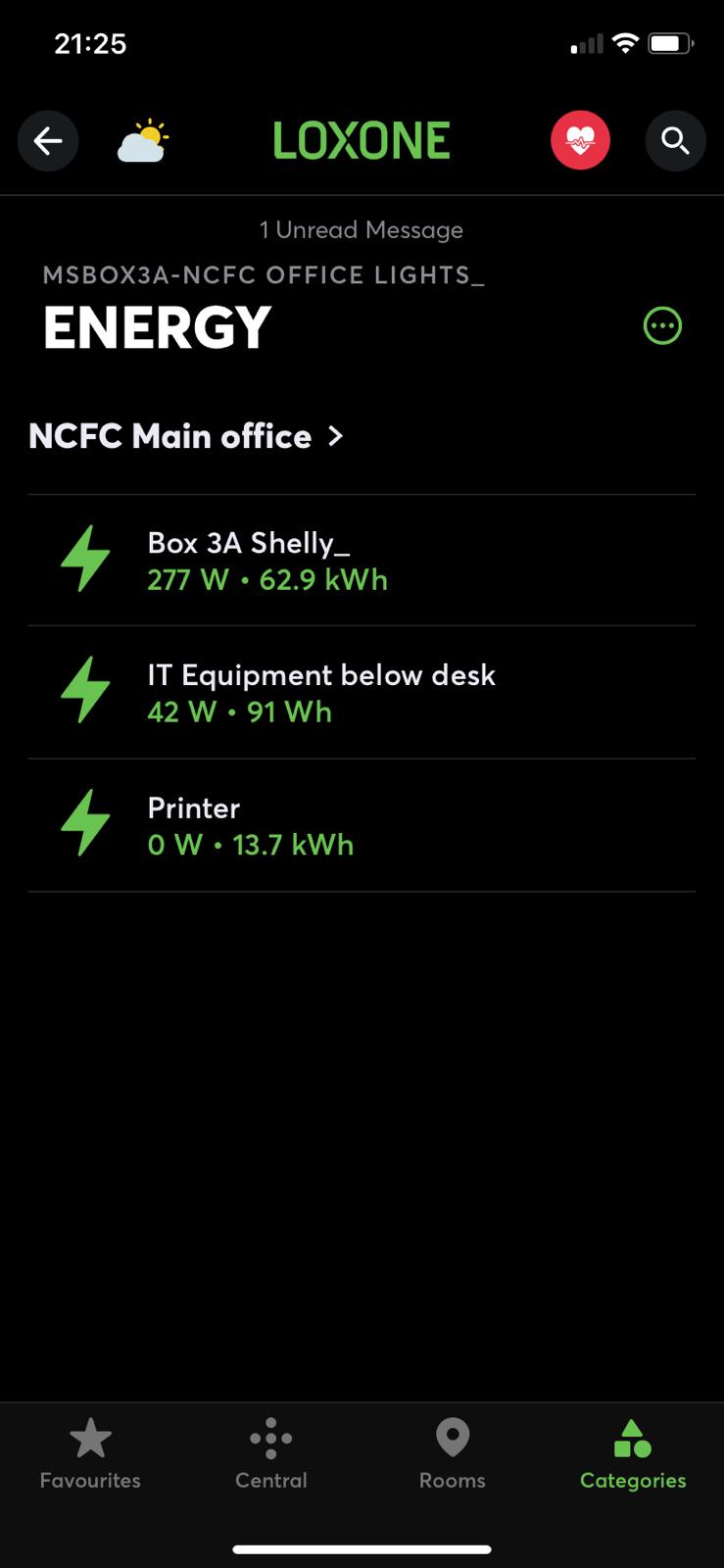 The energy boxes in the Stadium, across the 2 to 3 floors, were used in one of the food kiosks (measuring the drinks fridge for example). The data from that one kiosk was then multiplied across the 50 kiosks in the stadium. Additionally, monitoring was set up in the bars, offices (lighting and drinks fridge), and first-team changing room (heating and lighting).