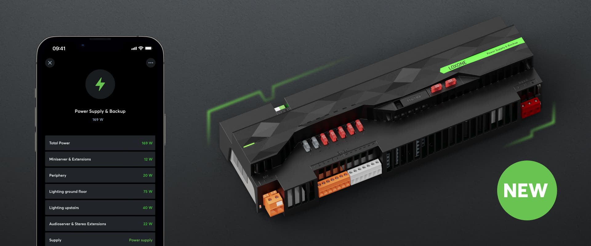 Plus, because this product has been specifically developed as part of the holistic smart home and building automation solution from Loxone, you can enhance the functionality with your own custom logic. This could include triggering a notification to your customers when the power supply switches over to the backup, and have the lights dim down to 20% for optimal backup battery usage.