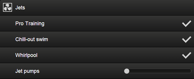 Feature 1: Pro Training, Chill-out Swim, Whirlpool
