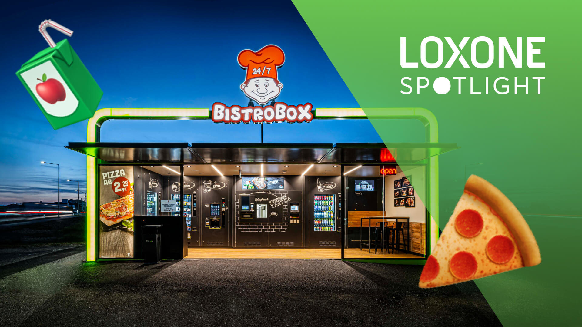 Welcome to the future of 24/7 restaurants! BistroBox, with the support of Loxone, has developed Austria’s first 24-hour pizzeria, revolutionizing the traditional concept of ordering a pizza. In this blog and video we will introduce you to BistroBox’s innovative concept, explain the role of Loxone within it and show how all the stakeholders benefit from the collaboration – head office, franchisees, operators and end customers.