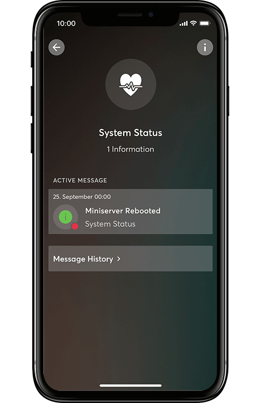 Similar to the lights on the dashboard of your car, the System Status feature displays useful information about your smart home – all within the Loxone Smart Home App.